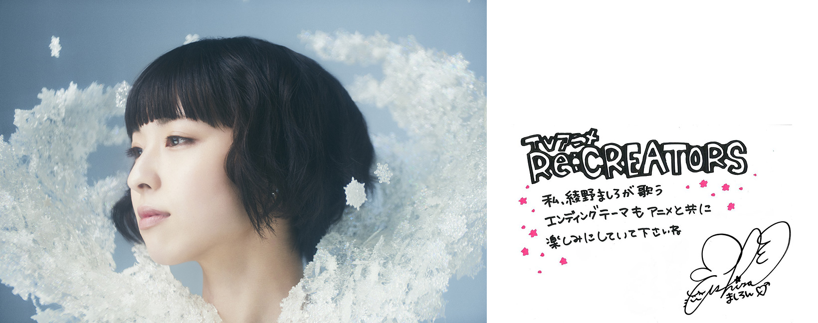 “レクリエイターズ” の世界にエンディングテーマに起用いただいた私の新曲 “NEWLOOK” が彩りや輝きを添えられればと思っています!!綾野ましろ